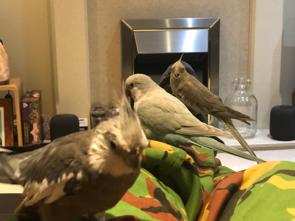 Fast forward to adulthood, freshly graduated and working and buying my first house (that said, before that whilst still renting Rich moved in with Paz for a while, still going strong!), one of the first things I did was buy myself a cockatiel. Lloyd was another pearl mutation, who turned out to be a she – and Frankie arrived soon after, another girl – a present from my then partner. A couple of years later we added a third, Phoebe.