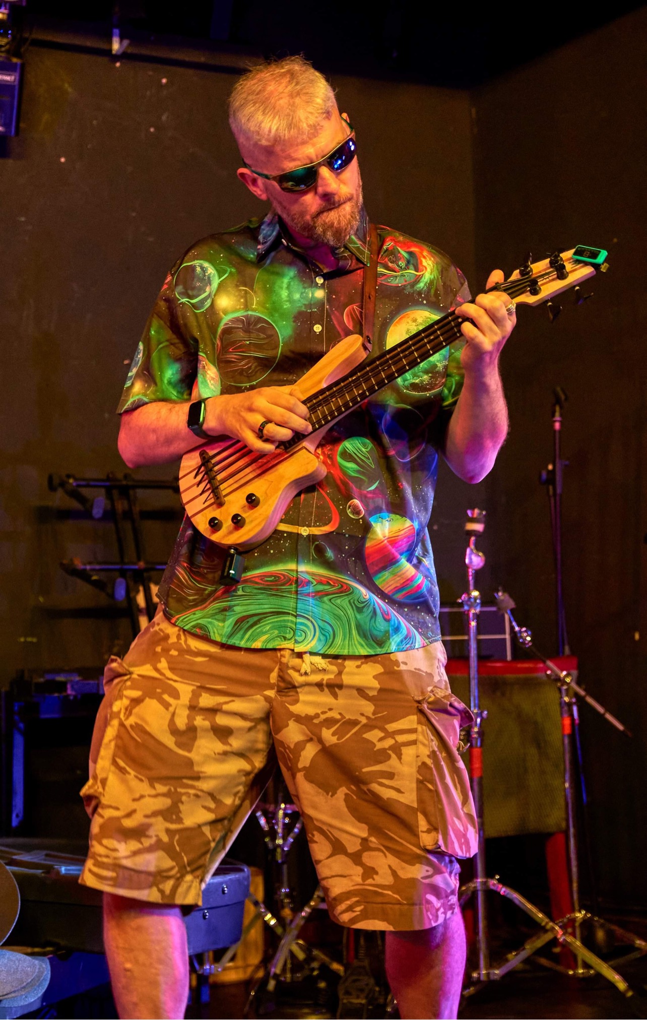 In the meantime I now have a choice of two basses – both ukulele sized albeit tuned like.a regular bass guitar, I like the quirkiness and convenience of size, a choice in pedal set ups, an amp – hmm, expensive hobby indeed. That’s what Russ always describes being in a grassroots band as being – and he’s not wrong, haha! But it’s a whole lot of fun!