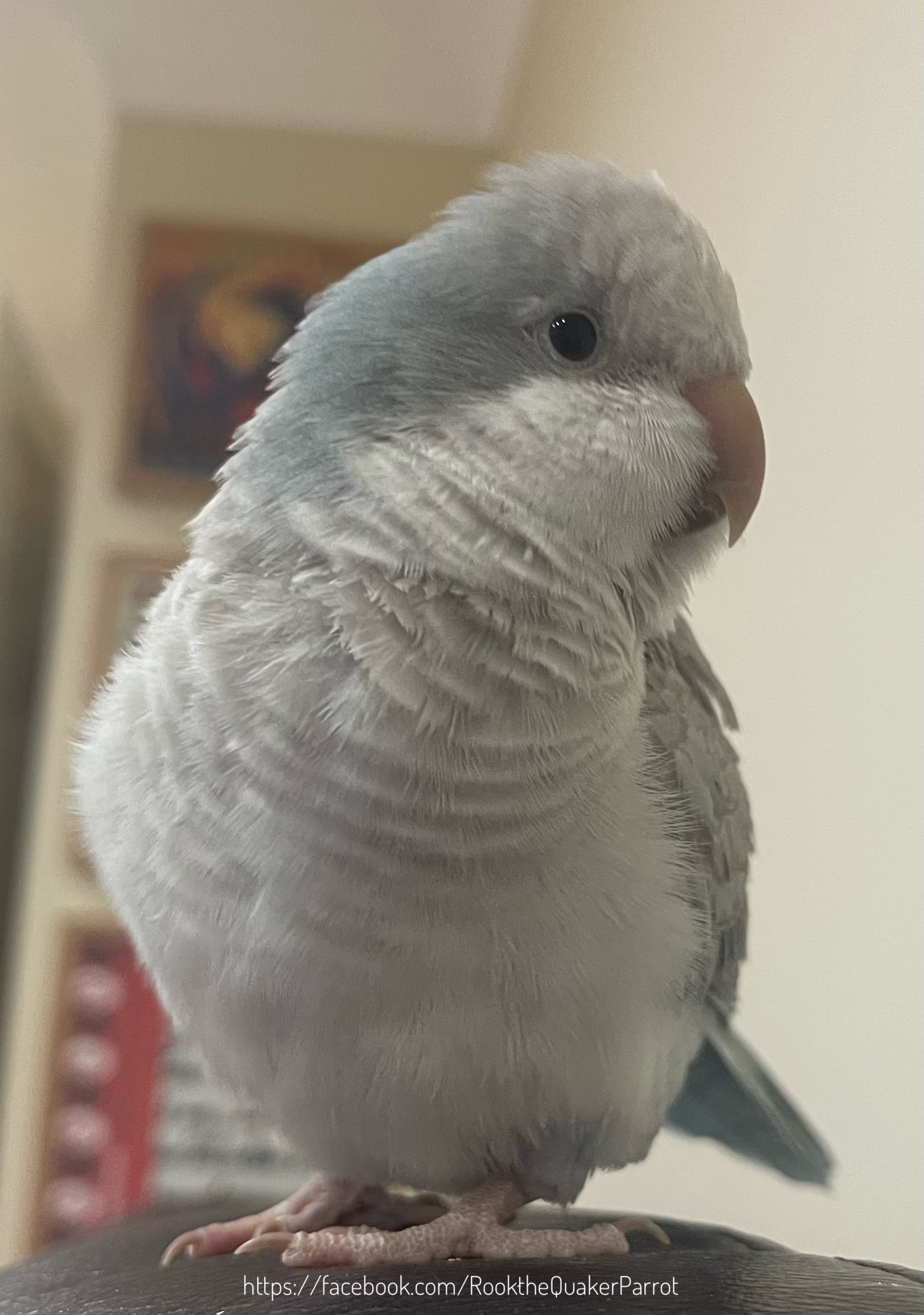 But of course, as mentioned above, I don’t thrive at planning or goal-setting! We are in the midst of lockdown thanks to Covid-19 – the Facebook page that I’d set up for Rook initially, which had been taken over by Frankie and Bill, received a message from a lady who had – guess what – a Quaker parrot, powder-blue no less, who needed a home. Sonic was bonded to her husband who was about to be away on tour with the armed forces and she felt it wasn’t fair, and having seen Rook’s shenanigans she thought she’d found the perfect home.