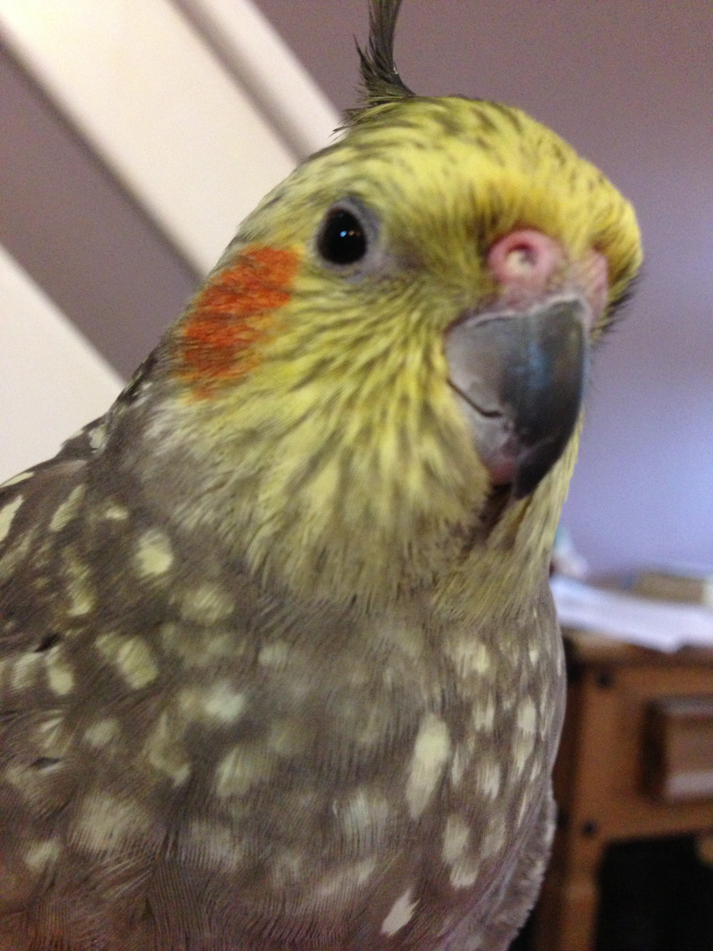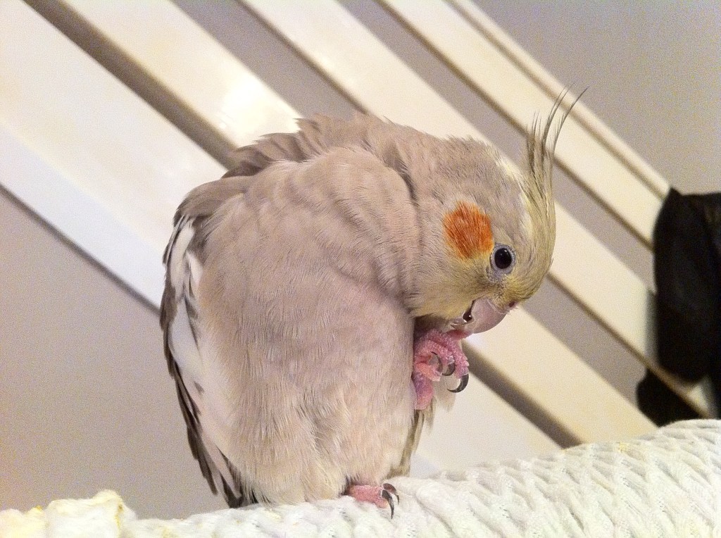 Rook meanwhile was really only interested in human interaction – which is good as he had a much more powerful beak than the tiels! His story was to end in tragedy too though, sadly. After showing symptoms of ill-health I took him straight to the avian vet, tests revealed not very much, but armed with formula I tried to build his strength and get him well. I’d thought we’d had a good day, I was feeding him a pomegranate seed before bed time (his favourite snack), he said ‘Whatcha got?’ – he’d hardly been talking whilst ill – but alas, I found him on the bottom of the cage the next morning.