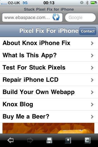 I was pretty dubious that simply visiting a webpage could fix the problem, but whilst I’ve had some re-occuring (interestingly this has only started happening since the 3.0.1 update for me – although others have reported stuck pixels pretty much since the birth of the iPhone). So there you have it, bombarding your screen with gaudy colours can sort it!
