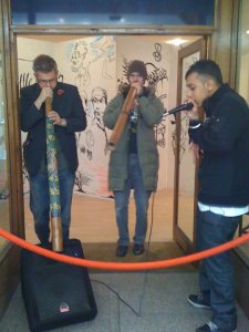 They beckoned us behind the velvet rope seperating them from the public so we could accompany the beatboxing with a spot of didge. Indeed, at one point the performer (who, to my eternal shame, I forget the name of..) ‘beatboxed’ down one of the didges into the microphone, which sounded amazing! We obviously all took opportunities to play the didges directly into the mic too, it’s made me want a mic and amp now, because it sounds amazing!