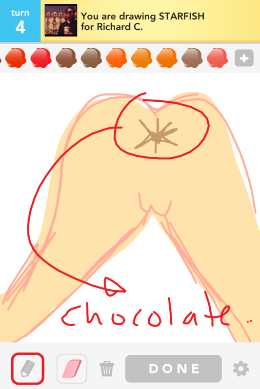 I got bored of drawing starfishes, so was glad to get the clue when playing against somebody as childish as I am!