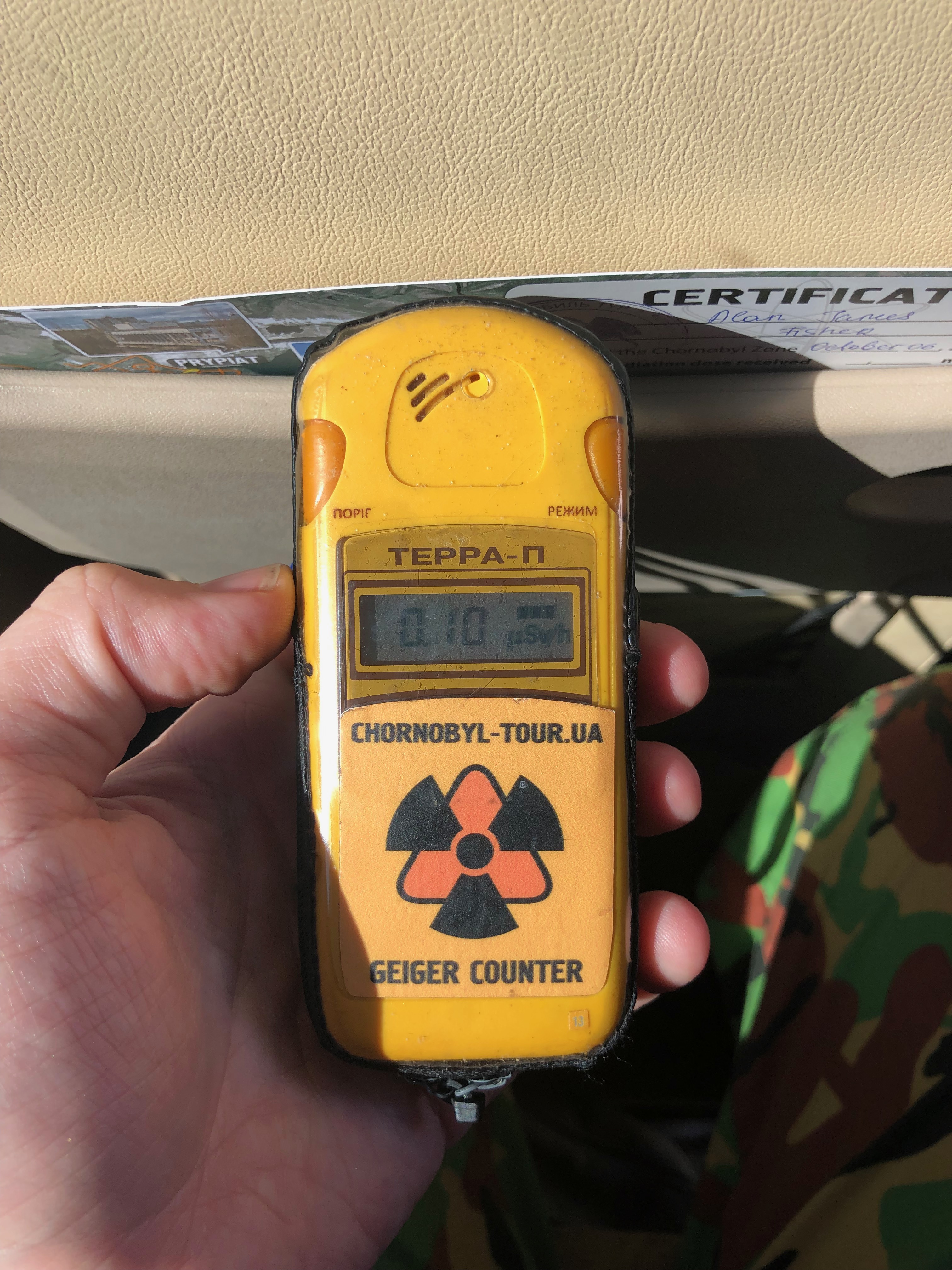 Checking our dosimeters upon exiting the zone showed that we’d been exposed to less radiation than we had received on our flight from London to Kiev, so all in all, a pretty safe endeavour!